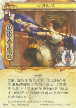 部队在战斗中造成+1点伤害并获得:「将本部队受到的第1点伤害,转嫁到任何相对应区域中的一个目标部队上。」