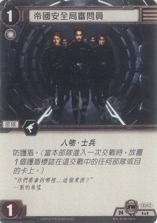 说明防护盾。(当本部队进入一次交战时,放置1个护盾标志在这交战中的任何部队或目的卡上。)