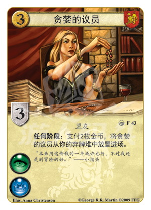 功能说明 任何阶段:支付2枚金币,将贪婪的议员从你的弃牌堆中放置进场。